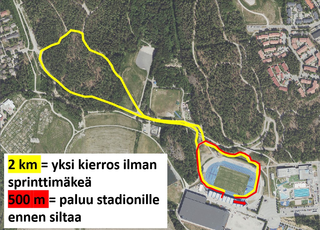 18:00 N/M6, N/M8 – 500 m (kuusiaidan takaa, ei sprinttinousua)